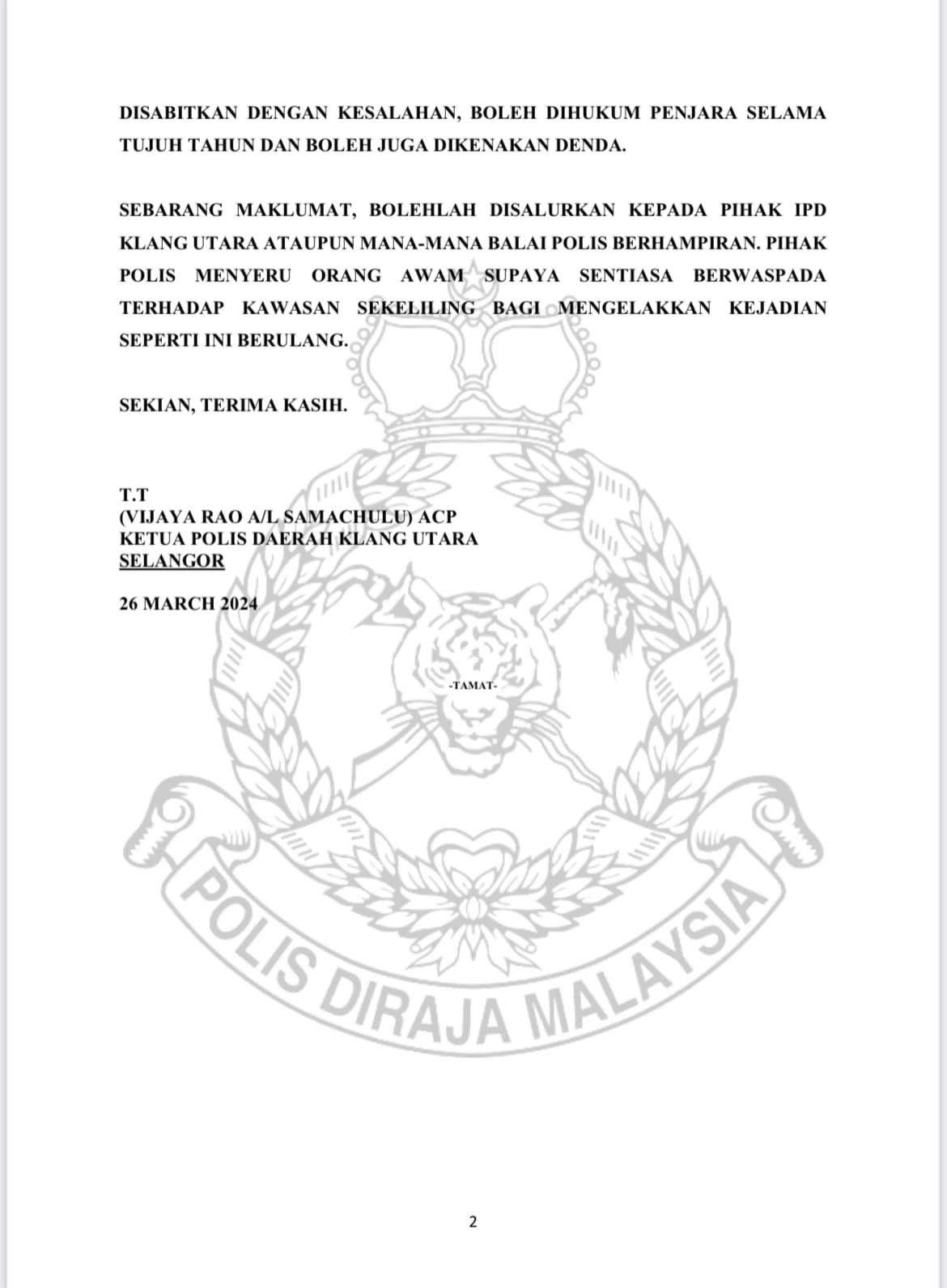 Polis kemudian mendapat laporan dan terus bergegas ke tempat kejadian. Kedua-dua suspek kini telah mendapat perintah tahanan reman selama tiga hari dari Mahkamah Klang bagi membantu siasatan.