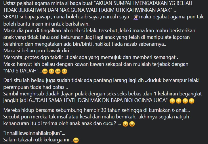 Difahamkan, pasangan berkenaan mempunyai 6 orang anak yang disyaki tidak sah taraf.