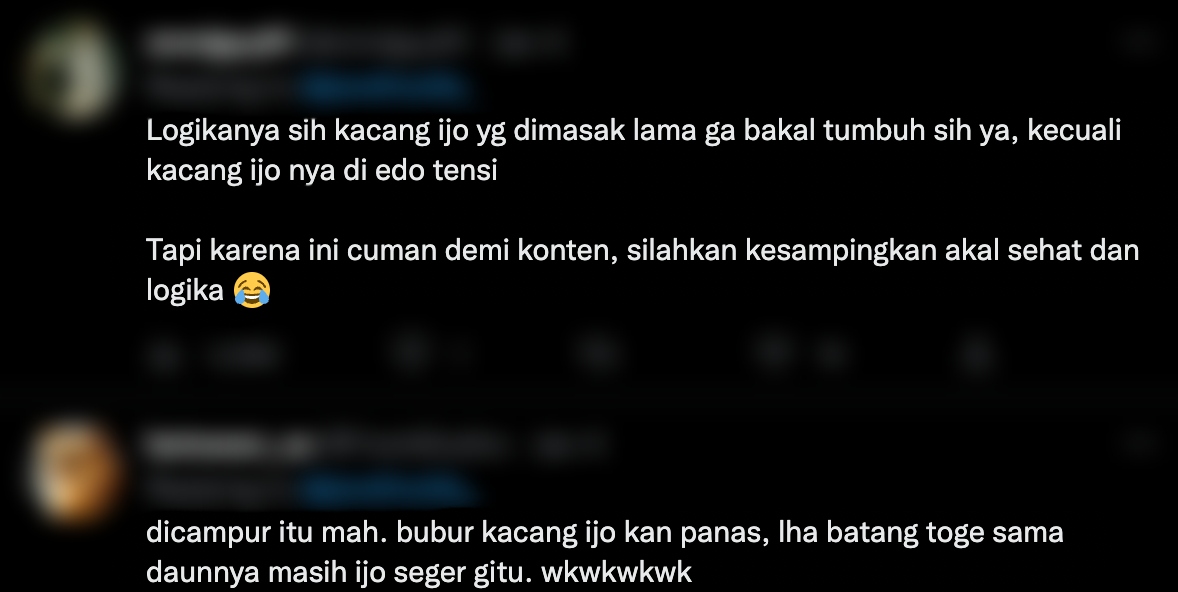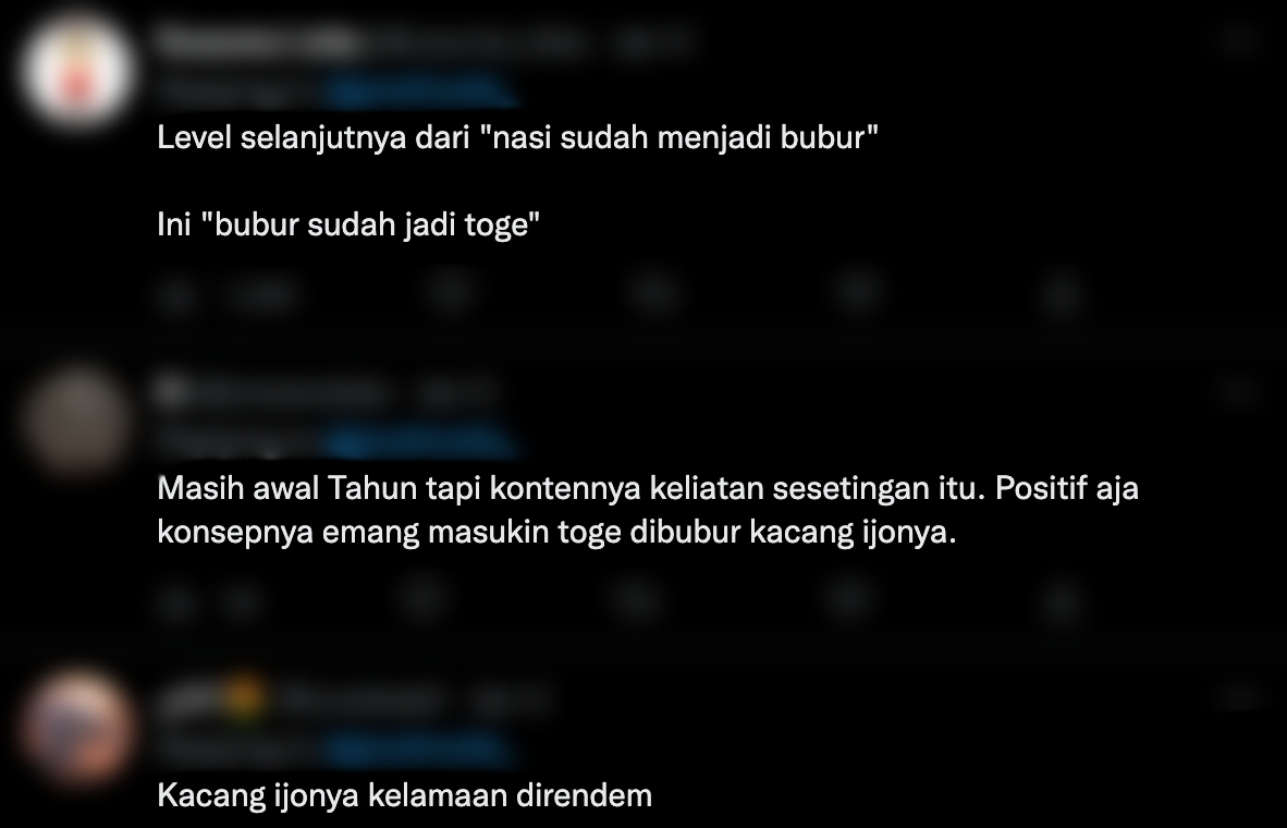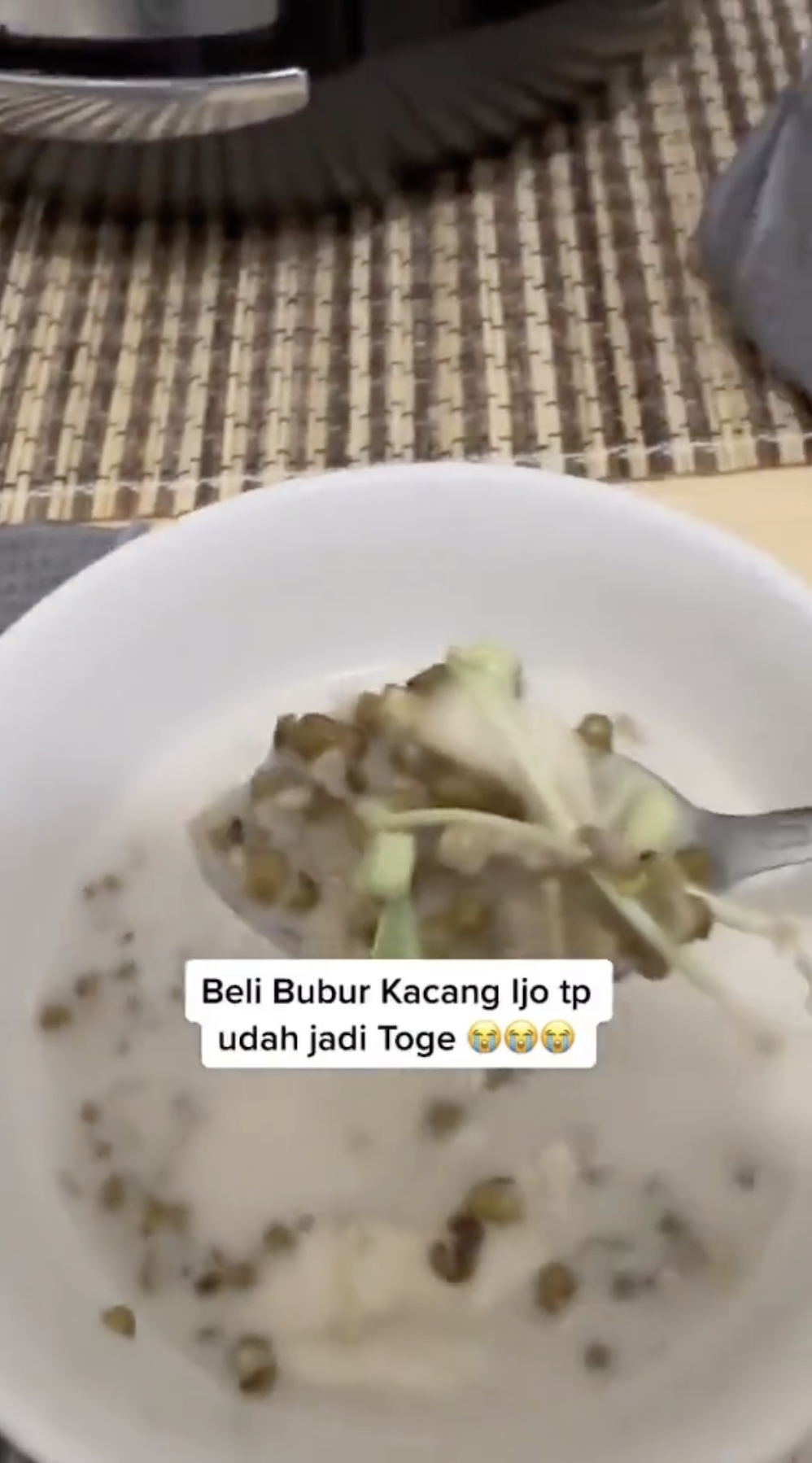 "Dicampur itu. Bubur kacang hijau kan panas, tauge dengan daunnya masih hijau segar tu" – Warganet