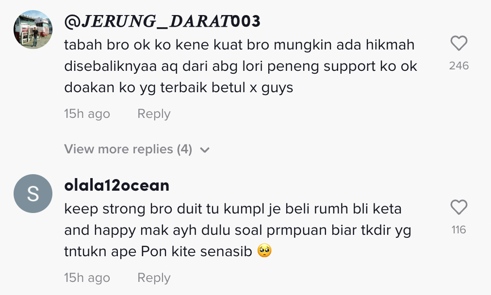 "Bertabahlah bro, aku tahu macam mana sakit tu. Aku pernah merasa perit dia tak terkata" – Netizen