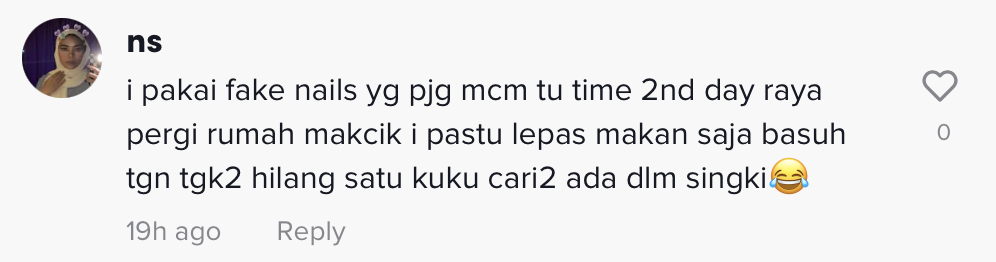 Seronok sangat beraya sampai tak perasan kuku palsu tertanggal