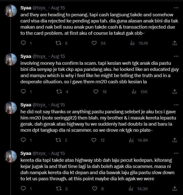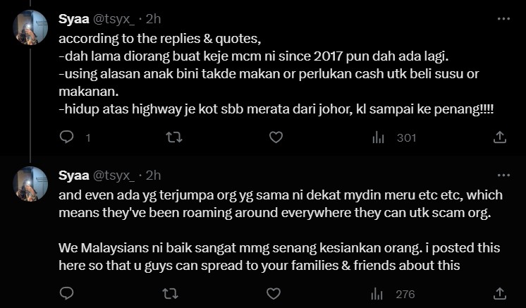 Cover image via @tsyx_ (Twitter)Baru-baru ini, tular apabila seorang wanita memberikan RM20 kerana simpati terhadap keadaan seorang lelaki warga asing bersama keluarganya