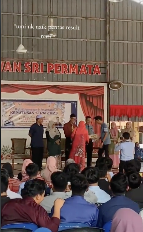 Menerusi video tersebut, kelihatan seorang pemuda telah dipanggil untuk naik ke atas pentas selepas dia mendapat keputusan yang cemerlang dalam Sijil Tinggi Persekolahan Malaysia (STPM 2023).