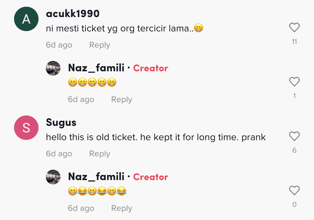 Berikut di bawah adalah antara komen menarik daripada netizen di TikTok: