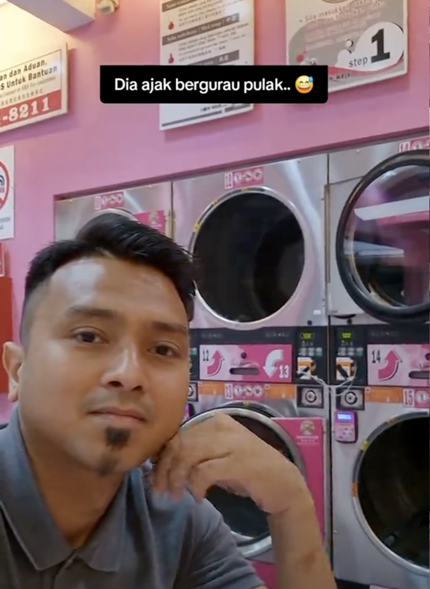 Menerusi video daripada akaun @nik.rahizal.nr.of, kelihatan lelaki berkenaan ketika itu sedang berada di sebuah dobi layan diri berseorangan.