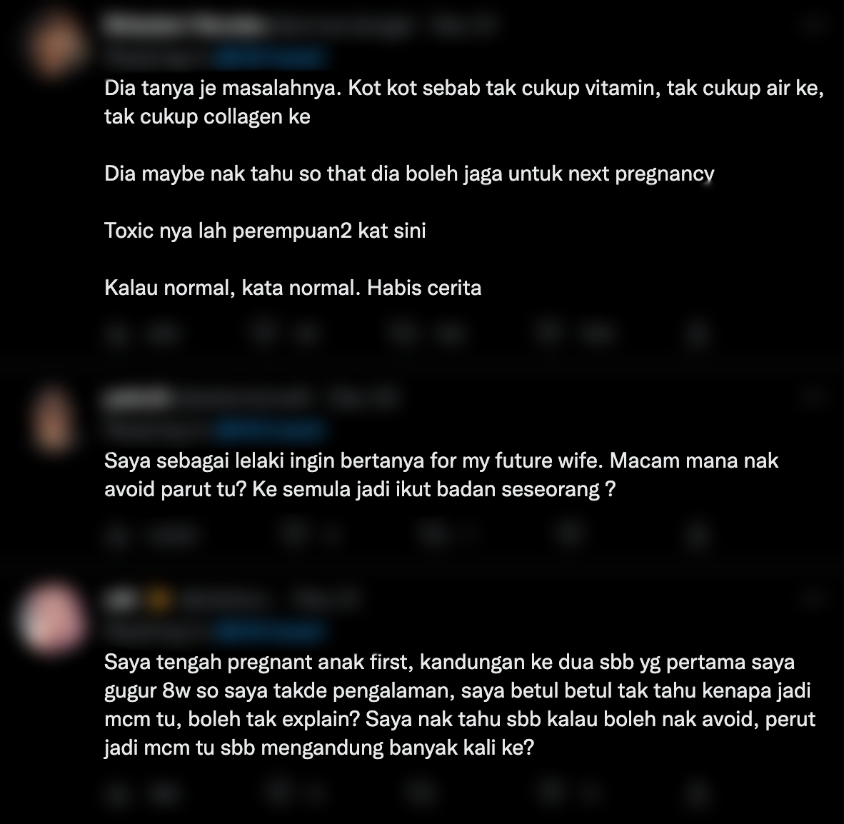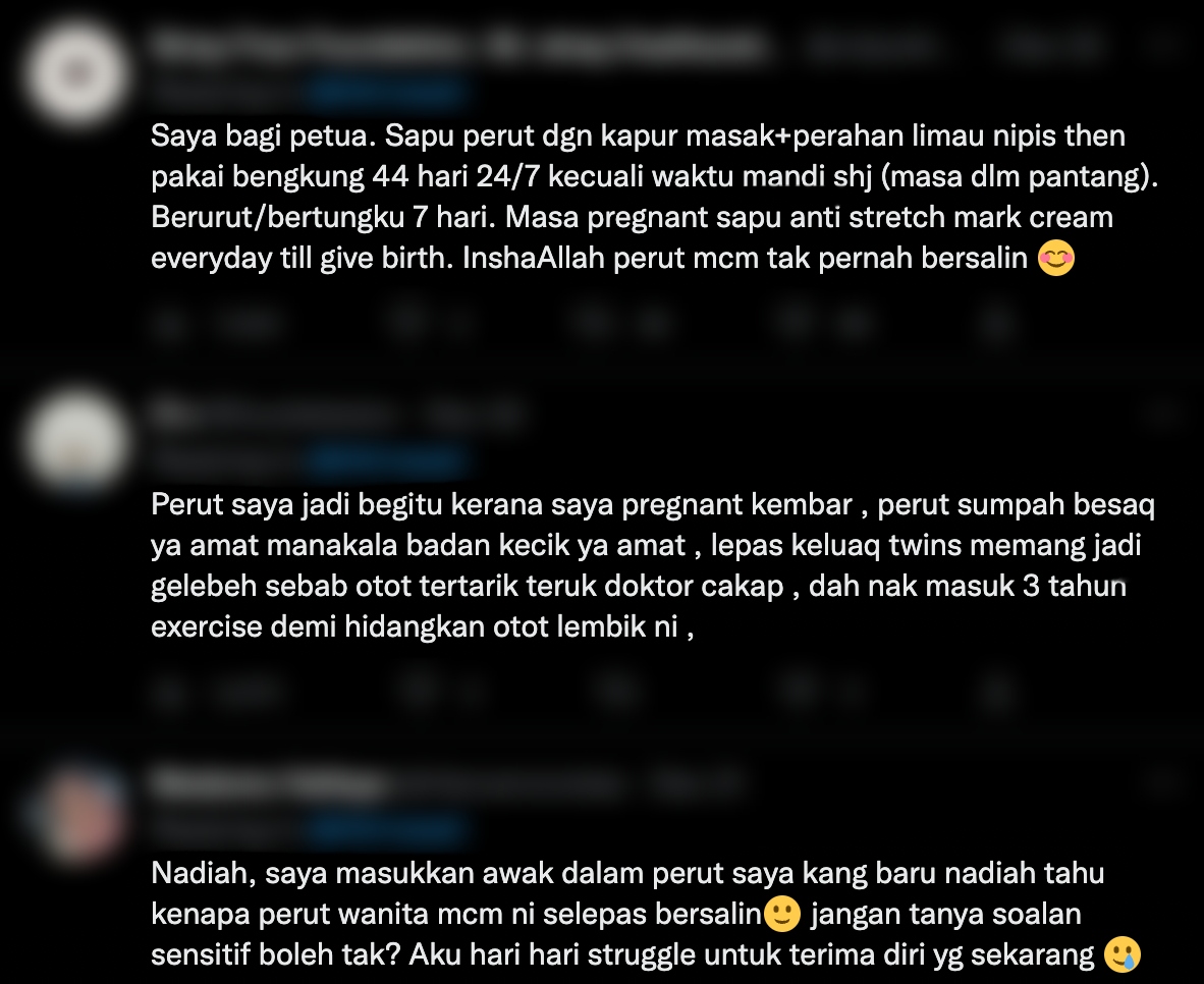 Namun, baru-baru ini tular sebuah ciapan di Twitter apabila seorang wanita mempersoalkan mengapa ada sesetengah perut perempuan yang 'teruk' selepas bersalin telah mendapat perhatian ramai.