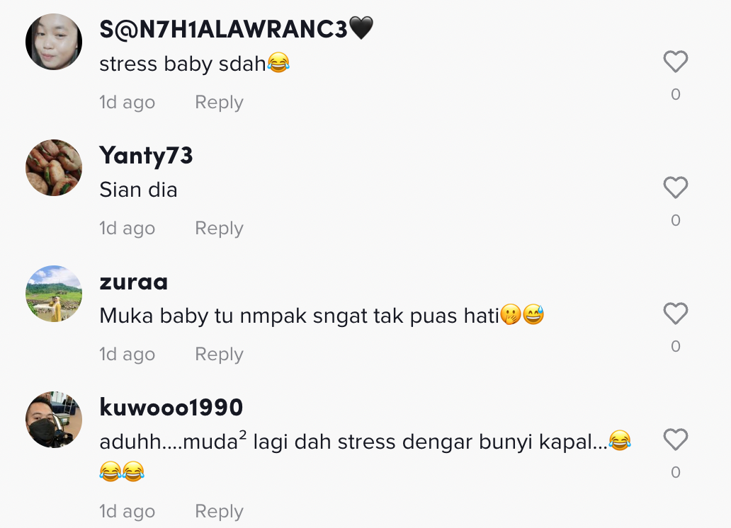 Sementara itu, tinjauan di ruangan komen mendapati rata-rata netizen turut terhibur melihat muka bayi tersebut.