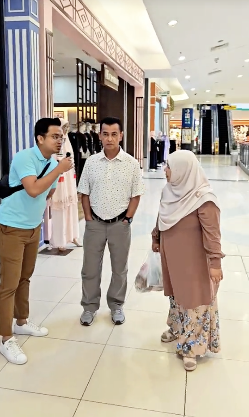 Menerusi video tersebut, kelihatan pada masa itu seorang lelaki sedang menemu ramah pasangan suami isteri di sebuah pusat beli-belah.