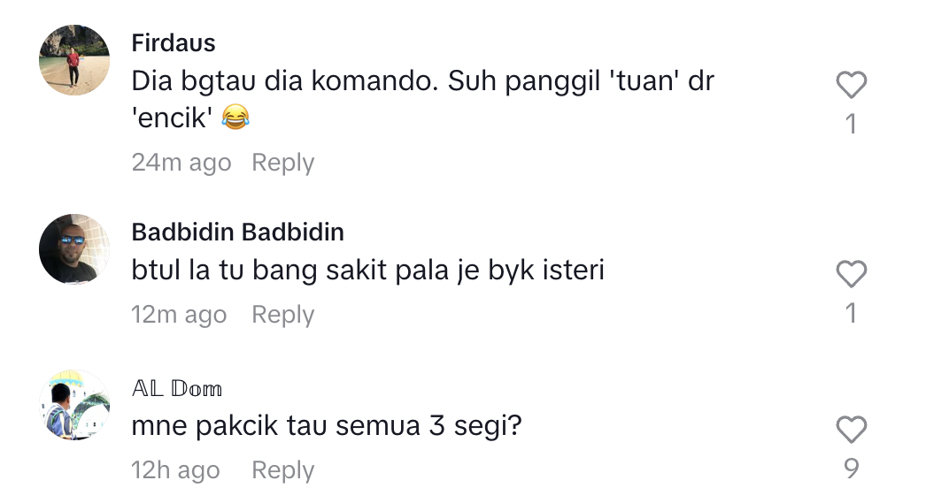 Berikut di bawah adalah antara komen daripada netizen di TikTok: