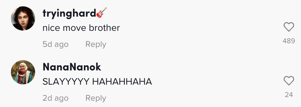 Berikut di bawah adalah antara komen menarik daripada warganet di TikTok: