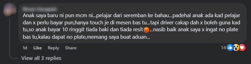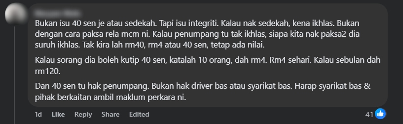 "Driver cakap susah nak sediakan banyak-banyak syiling, kebanyakan penumpang juga tak bawa syiling," tulisnya.