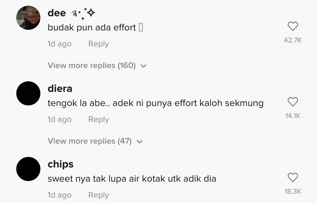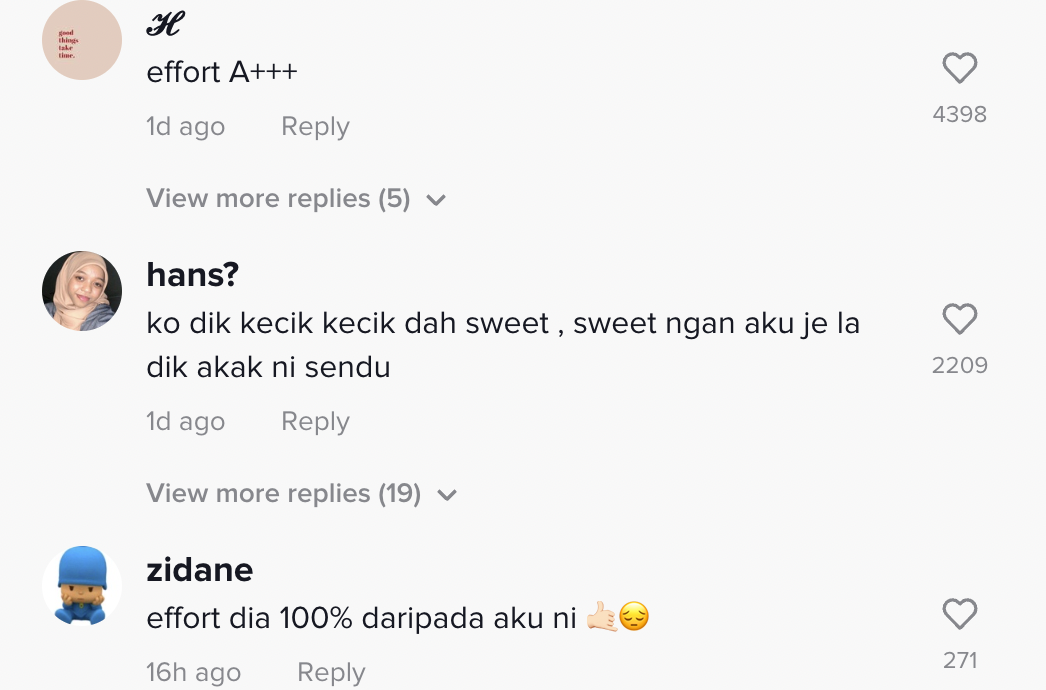 "Effort dia 100% daripada aku ni" – Netizen