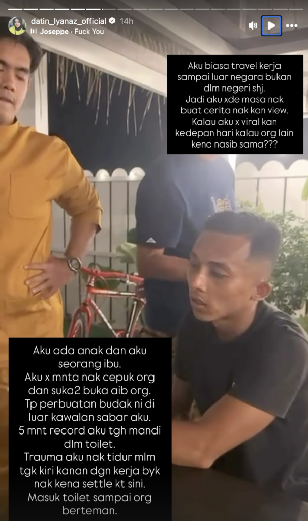 Menurut video dan IG storynya, kejadian dipercayai berlaku ketika pengasas produk kecantikan itu sedang mandi dan mendapat tahu seorang lelaki yang juga pekerja homestay tersebut nekad merakam dirinya secara senyap selama hampir lima minit.