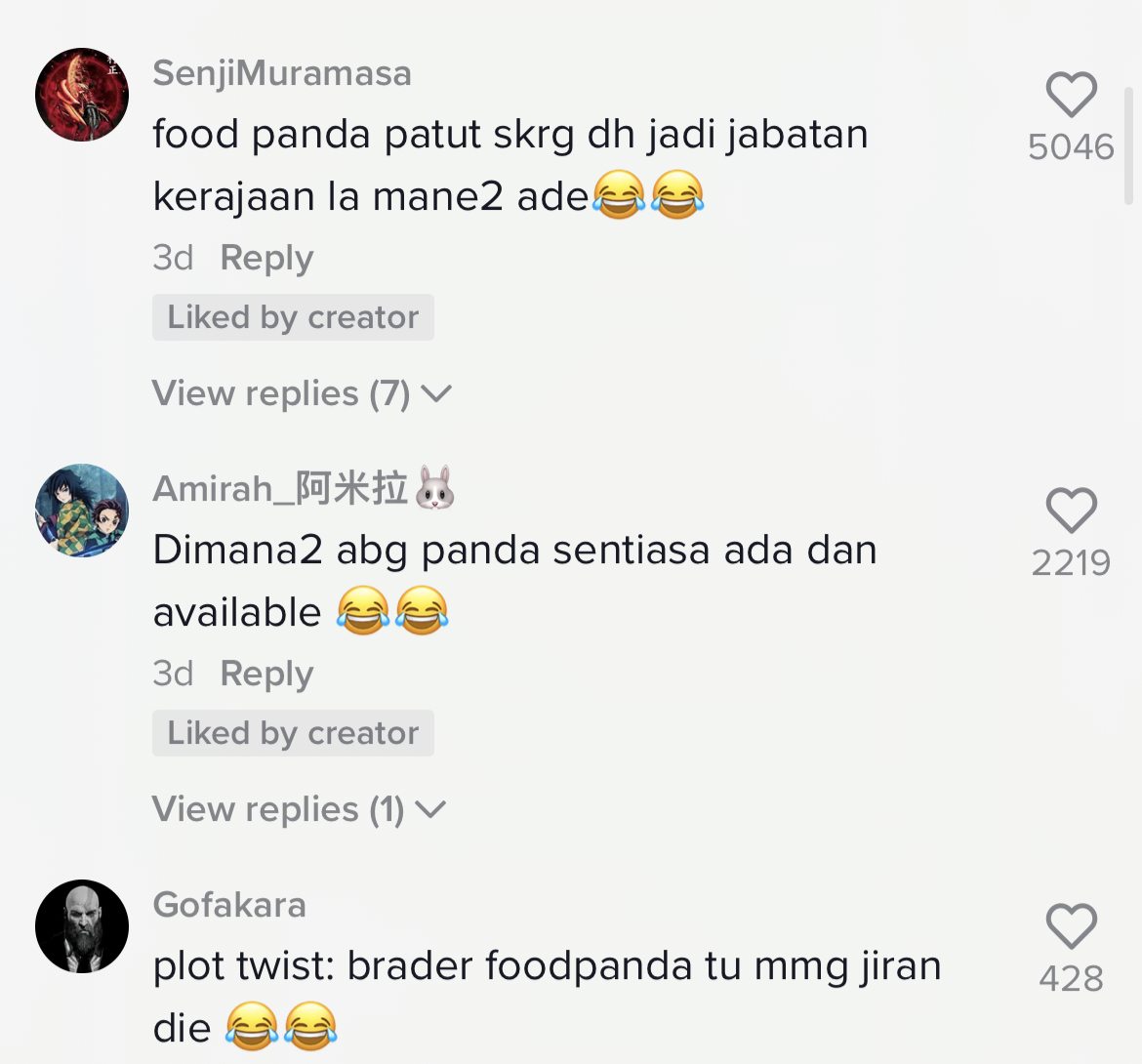 "Kerajaan kena bagi penghargaan dekat rider foodpanda ni, bila waktu memerlukan ada saja dia" – Netizen