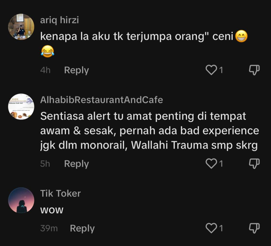 "Perempuan kena alert! Ceritanya aku turun dari plaza rakyat nak pergi ke bukit bintang, lagi pun ada sahaja orang di stesen nak mengarah ke mrt kajang line tu, selepas itu bila aku masuk sahaja, aku nampak mamat ni tengah tengok maps rapid tu aku memang nampak jelas dia tengah tengok, aku fikir yang positif jer lah kan?