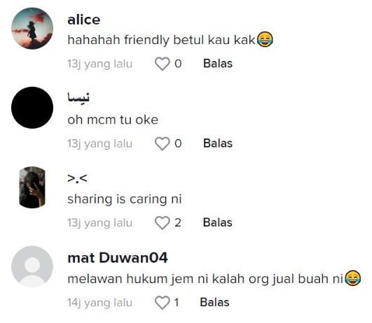 "Melawan hukum jammed ni kalah orang jual buah ni haha" – Netizen