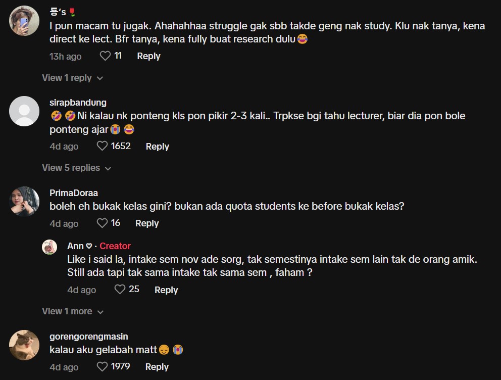 "Ini kalau nak ponteng kelas pon fikir dua, tiga kali. Terpaksa beritahu lecturer, biar dia pun boleh ponteng ajar" – Netizen