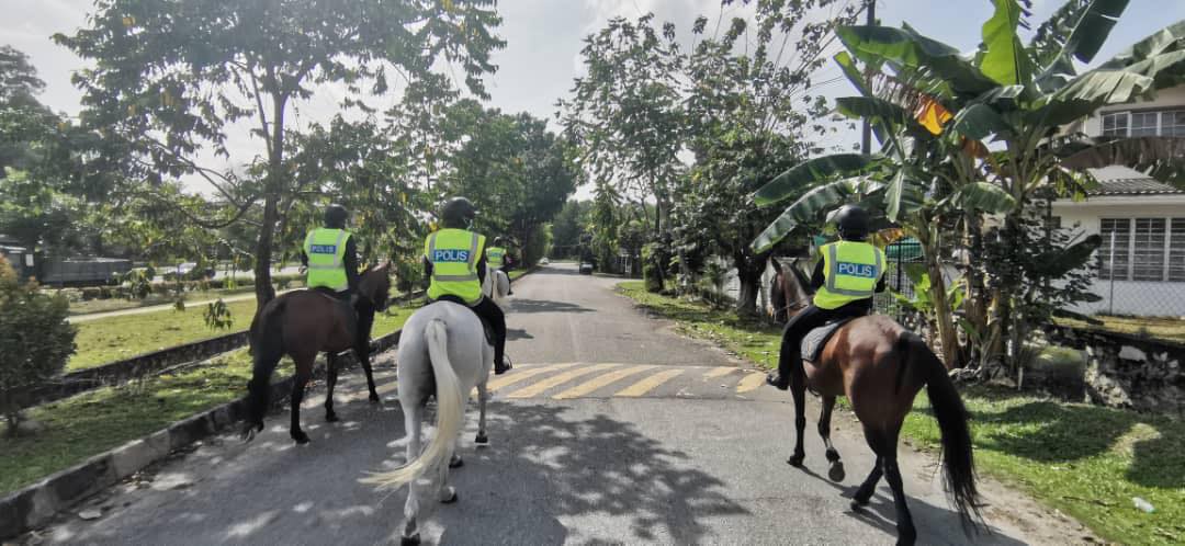 [GAMBAR] Polis Tunggang Kuda Sambil Meronda Di Kawasan Perumahan Ini Buat Ramai Terpegun