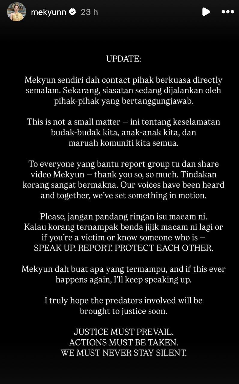 "Mekyun dah buat semampu yang boleh sekarang harapan Mekyun, tindakan tegas dapat diambil dan keadilan ditegakkan.