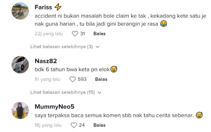 "Kalau aku ni nangis dah, dah lah kereta satu tu je nak guna pergi sana sini" – Netizen