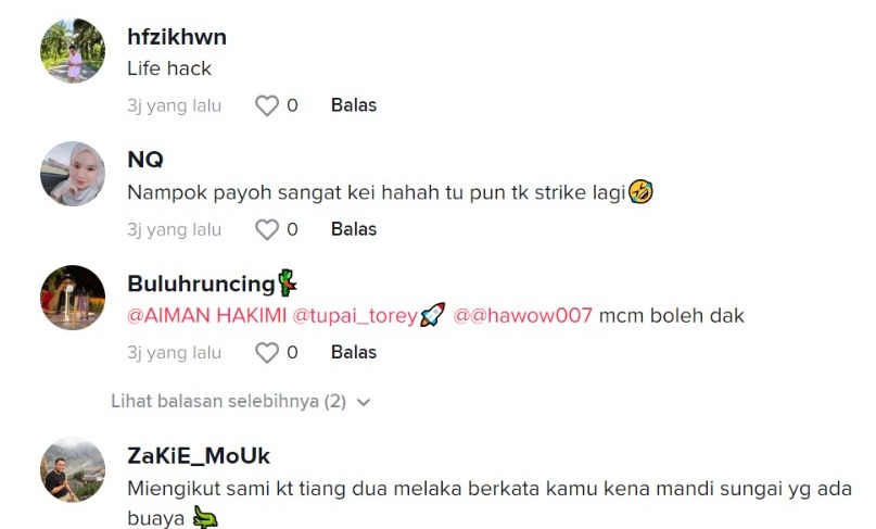 Berikut di bawah merupakan antara komen menarik daripada netizen di TikTok: