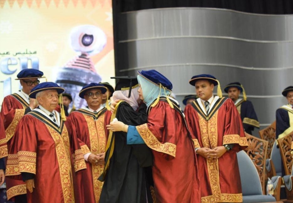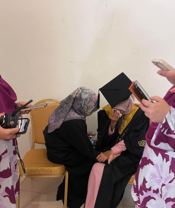 Haslina telah ditemani kakak sulungnya yang datang dari Johor untuk hadir ke majlis konvokesyen berkenaan.