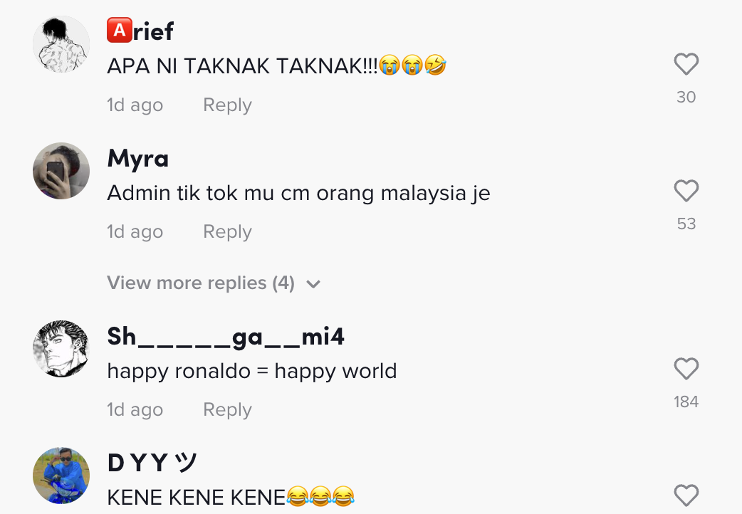Berikut di bawah adalah antara komen daripada netizen di TikTok: