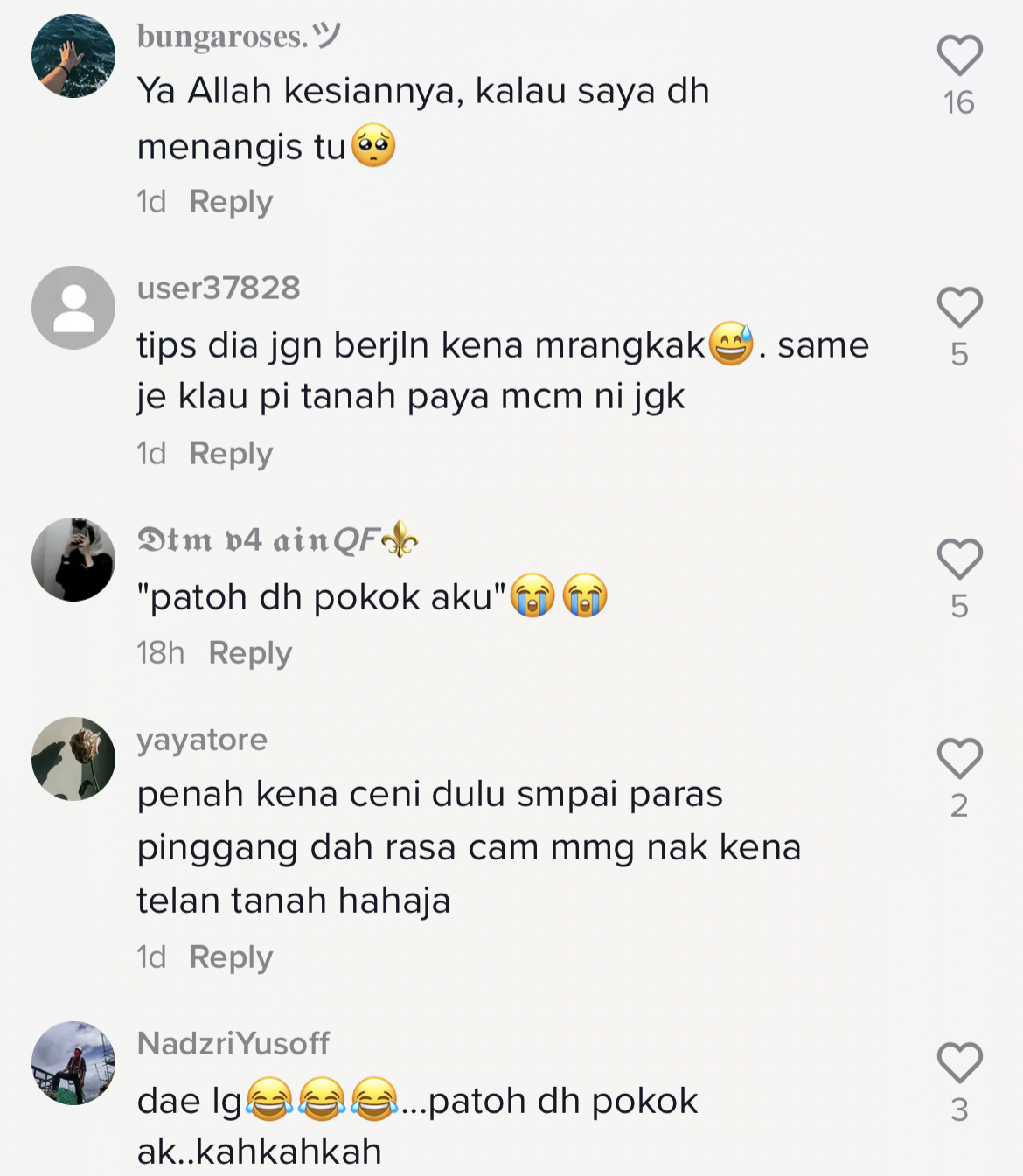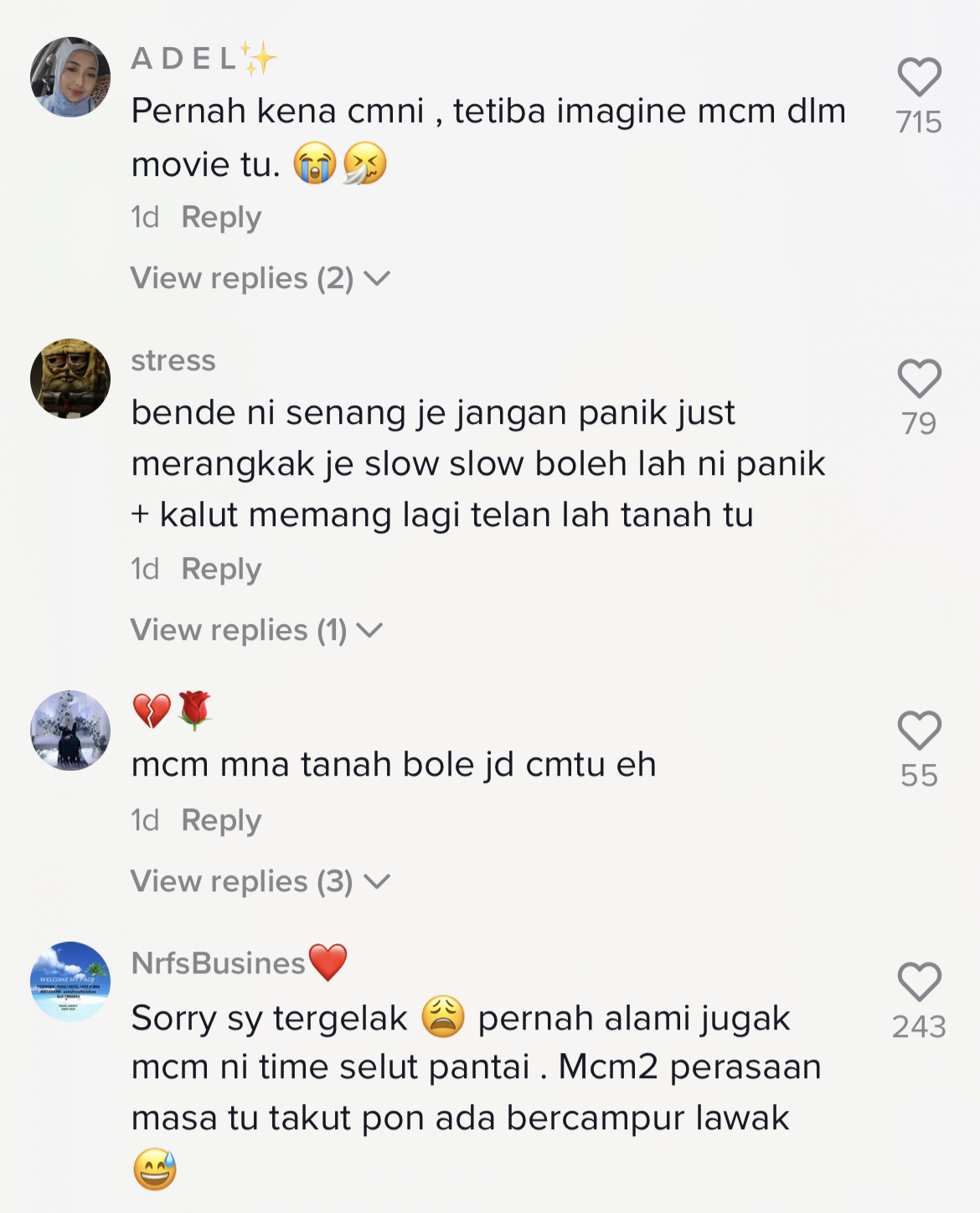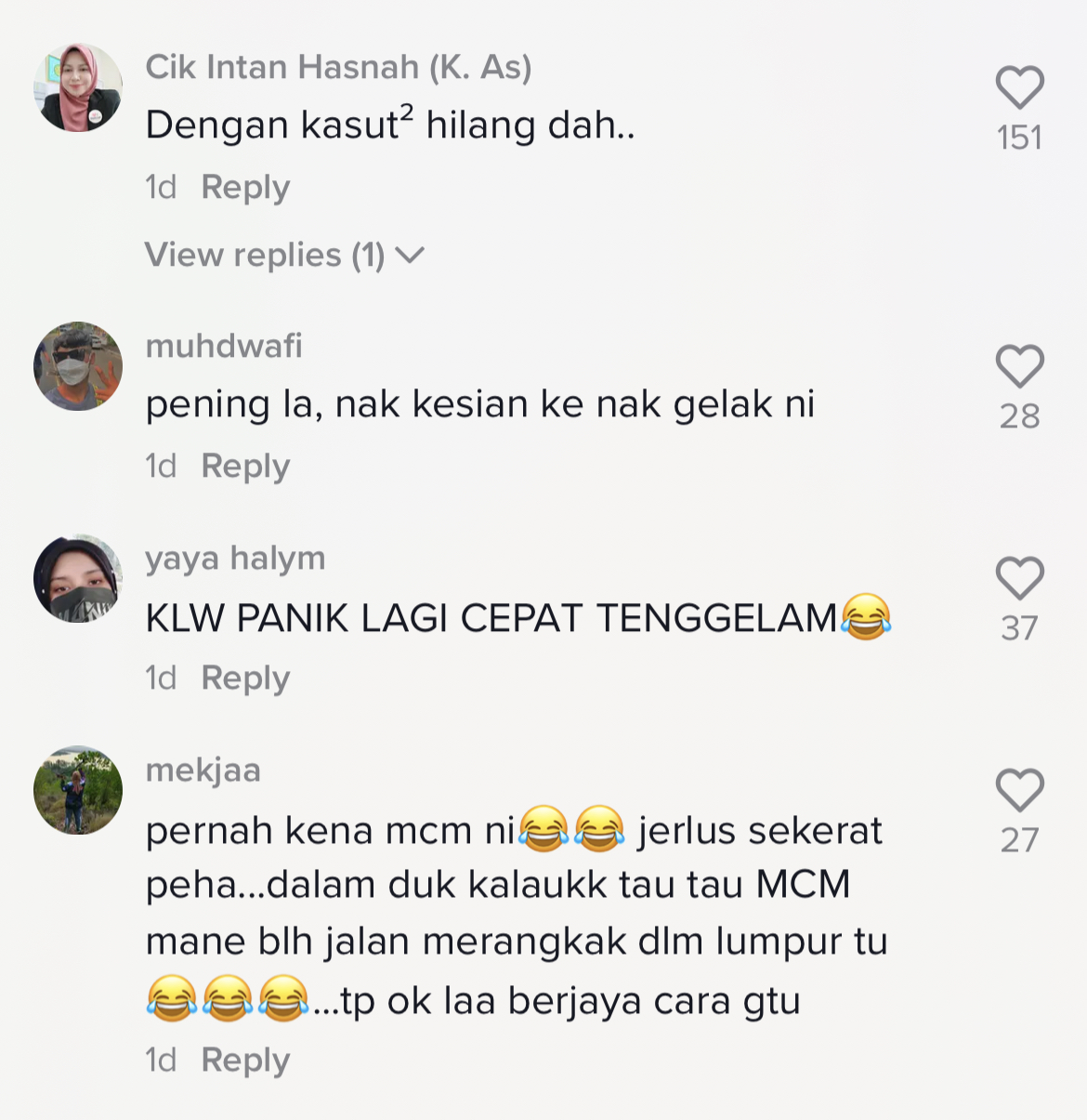 "Pernah kena macam ni sampai paras pinggang dah, rasa macam memang nak kena telan tanah hahaha" – Netizen