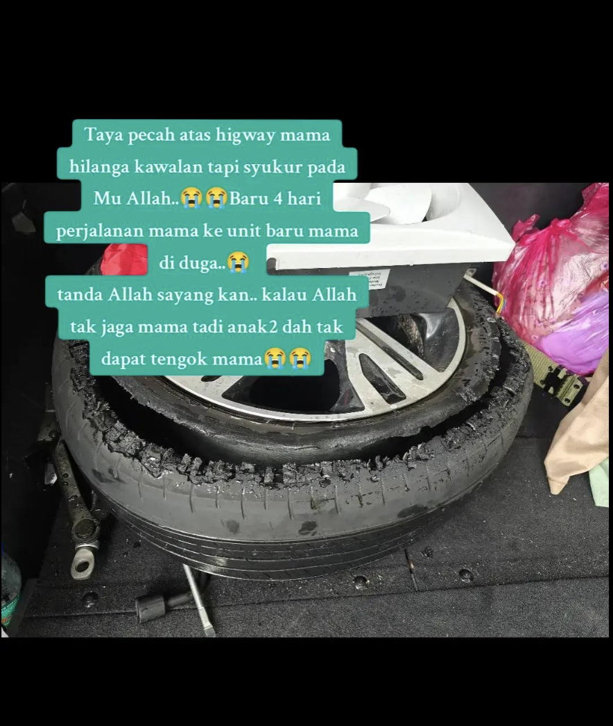 Begitulah yang berlaku kepada seorang wanita yang bersyukur kerana masih selamat selepas tayar keretanya tiba-tiba pecah.