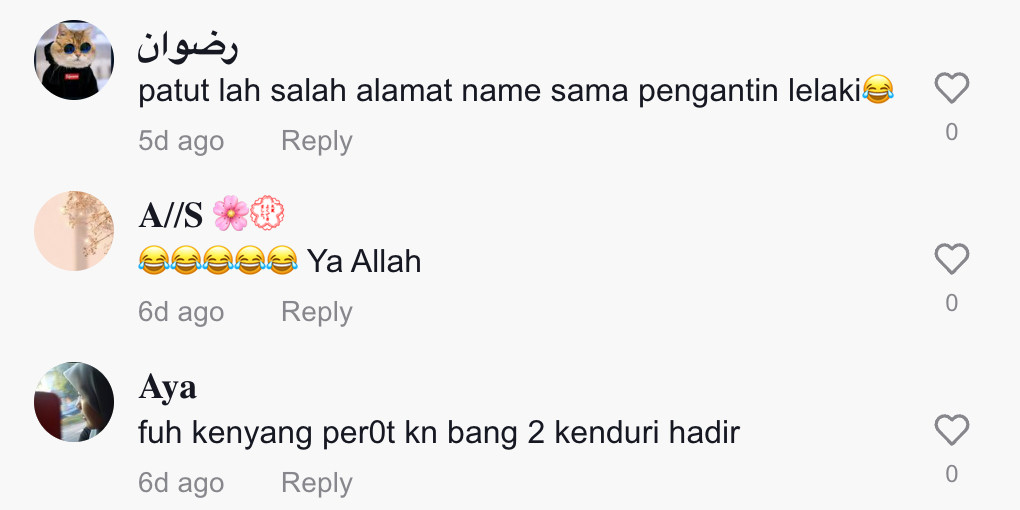 "Patut lah salah alamat nama sama pengantin lelaki" – Netizen