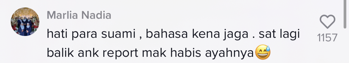 "Hati-hati para suami, bahasa kena jaga. Nanti balik anak report dekat mak habis ayahnya" – Netizen