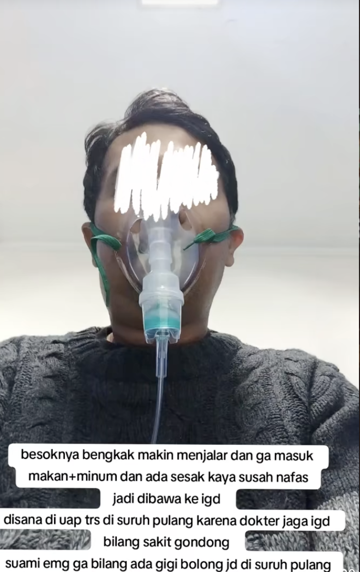 Namun, hari demi hari keadaan lelaki itu semakin teruk sehingga pipinya mula membengkak sehingga menyukarkan suaminya makan dan bernafas.