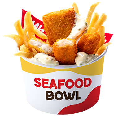 Anda sukakan makanan barat Fish and Chip? Kalau begitu boleh lah cuba Seafood Bowl dari Marrybrown ini. Menu ini dihidangkan bersama isi ikan rangup, kentang goreng dan juga sos tar-tar, rasanya memang persis Fish and Chip.