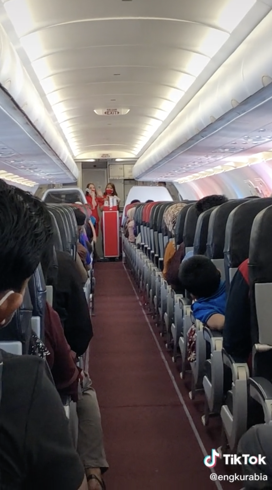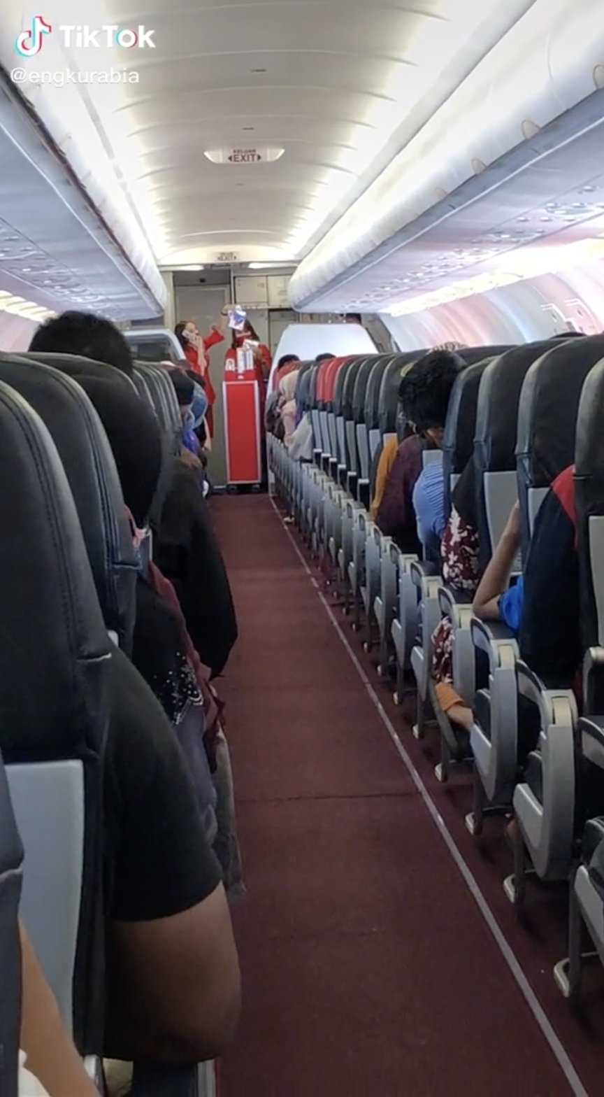 Menerusi video tersebut, kelihatan dua orang pramugari sedang berada di bahagian depan pesawat untuk menjual barang kepada penumpang mereka.