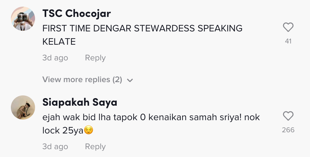 "First time dengar stewardess speaking Kelate" – Netizen
