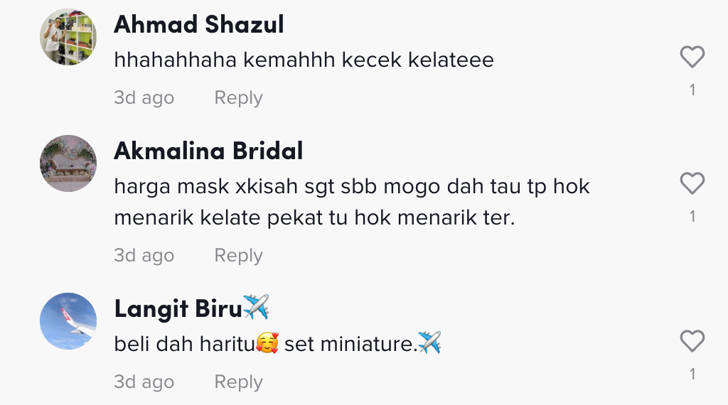 Berikut di bawah adalah antara komen menarik daripada netizen di TikTok: