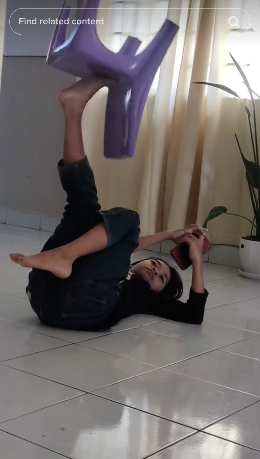 Menerusi video tersebut, kelihatan seorang individu sedang merakam aksi seorang budak bermain dengan kerusi dirumahnya.