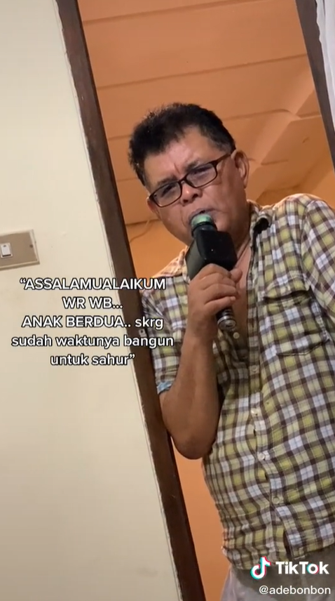 Tetapi apa yang lebih melucukan adalah cara si ayah yang mengejut anak-anaknya bangun sahur dengan menggunakan mikrofon.