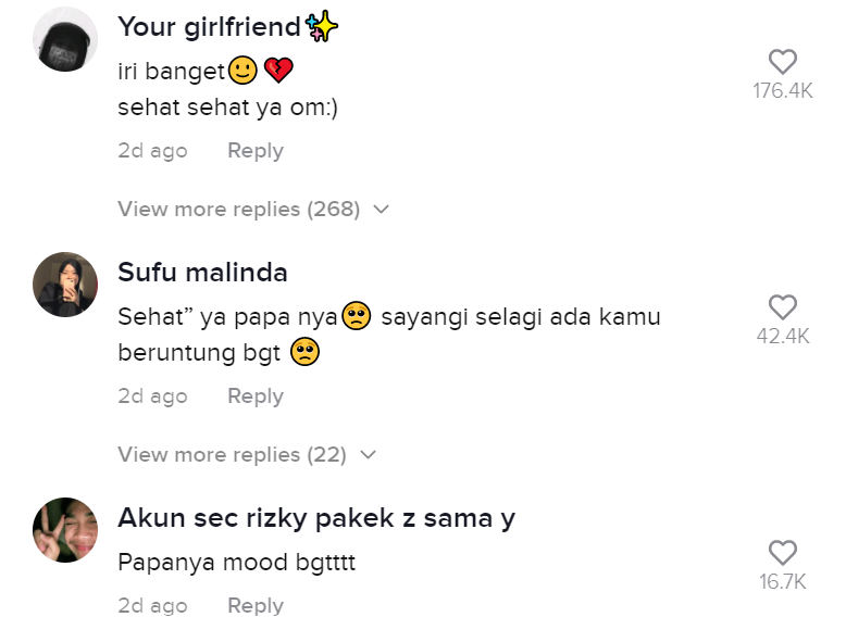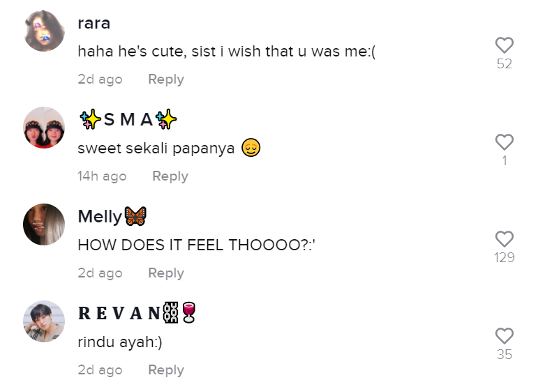Malah, ramai pula yang meluahkan rasa rindu mereka kepada ayah masing-masing. Ada juga yang cemburu melihat telatah keluarga itu.