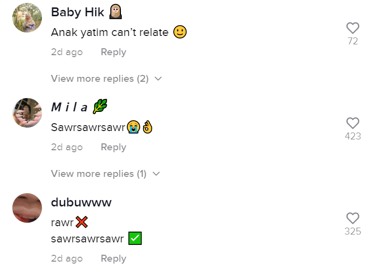 Berikut di bawah adalah antara komen menarik daripada warganet di TikTok: