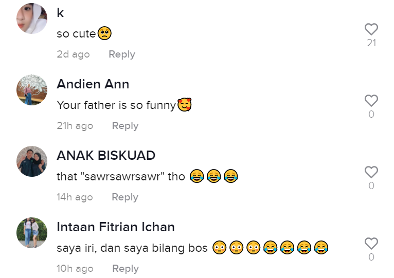 Dalam pada itu, tinjauan diruangan komen mendapati warganet turut terhibur melihat telatah si ayah tersebut.