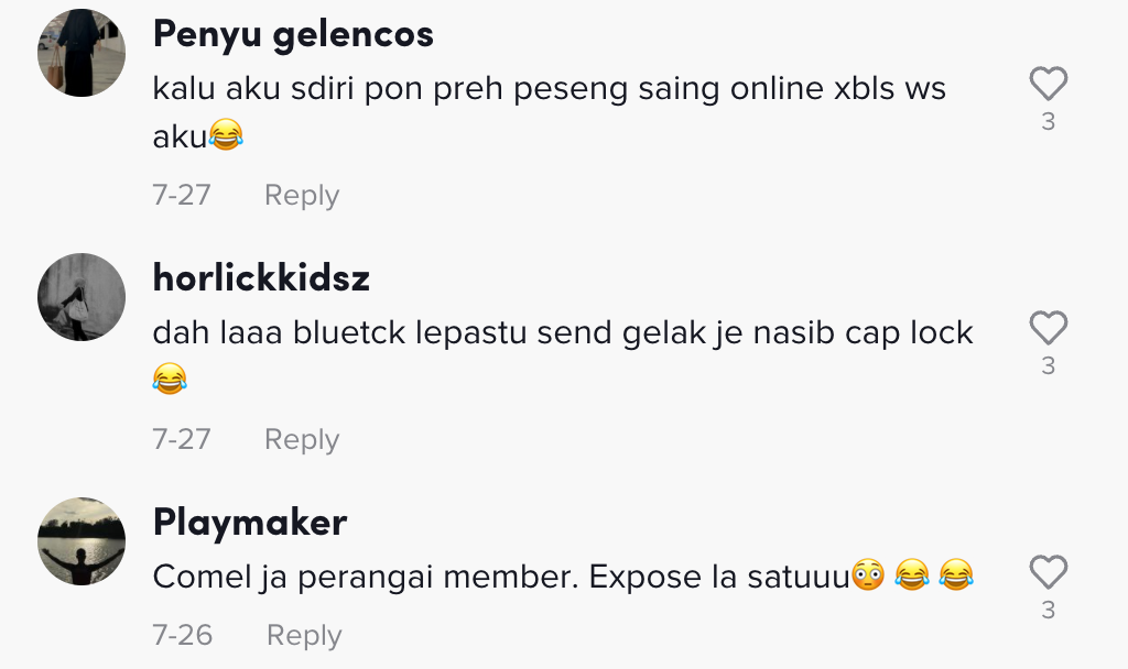 Berikut di bawah adalah antara komen daripada netizen di TikTok: