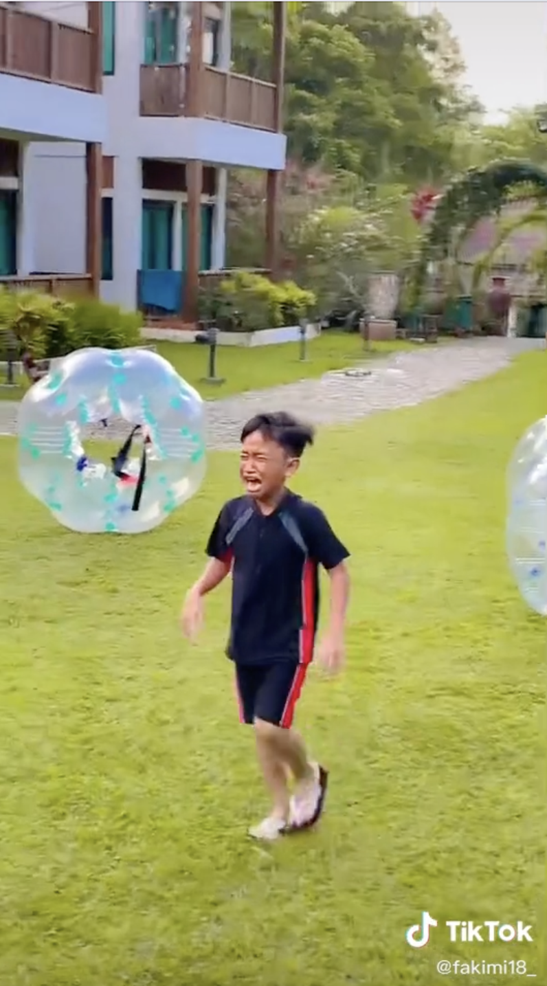 Namun, apa yang mendapat perhatian ramai adalah reaksi budak lelaki itu yang ketakutan kerana bimbang terlanggar tiang. Kesudahannya, dia dilihat menangis.
