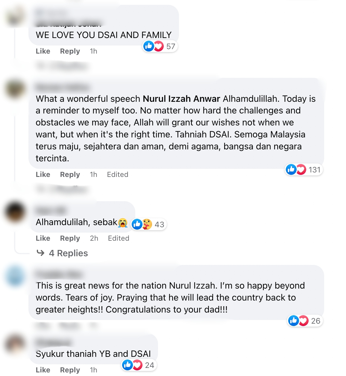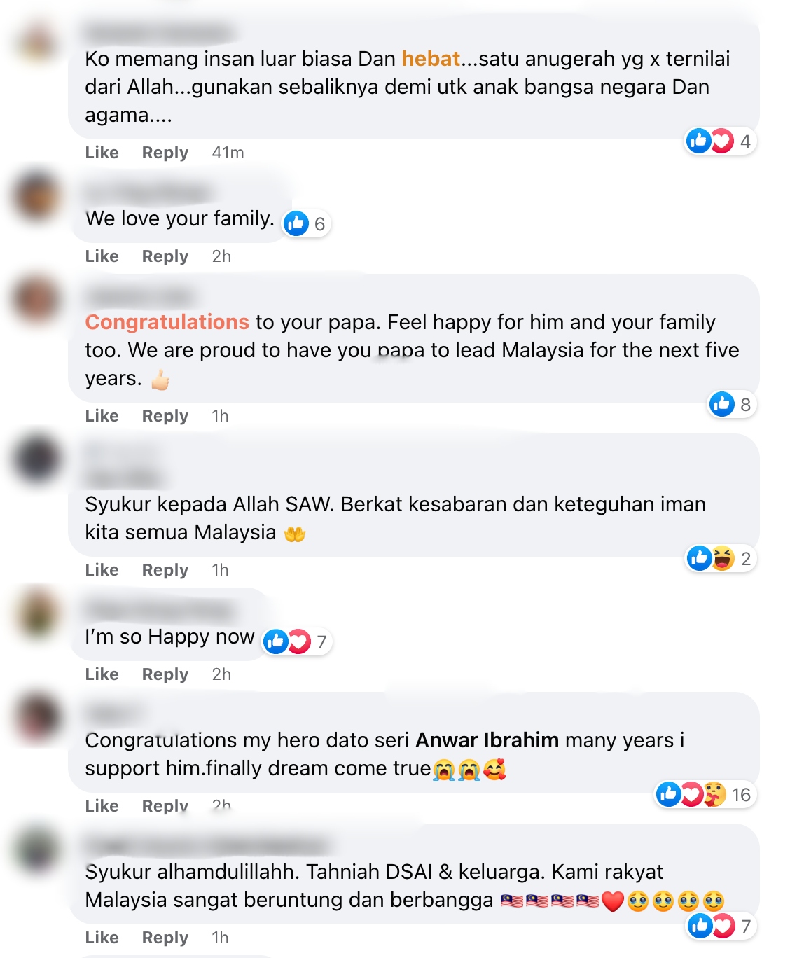 Sementara itu, tinjauan di ruangan komen mendapati rata-rata netizen turut mengucapkan tahniah atas pelantikan Datuk Seri Anwar Ibrahim sebagai Perdana Menteri Ke-10.