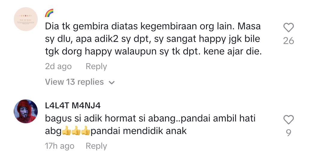 "Respect adik tu. Dia pujuk abang dia. Didikan yang hebat" – Netizen