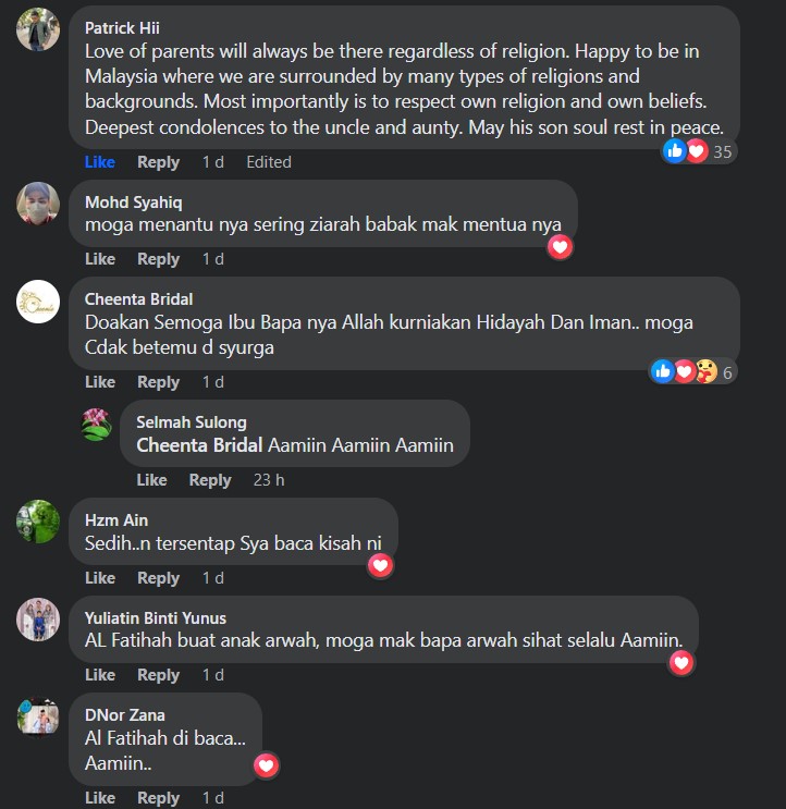 "Love of parents will always be there regardless of religion. Happy to be in Malaysia where we are surrounded by many types of religions and backgrounds. Most importantly is to respect own religion and own beliefs" – Netizen