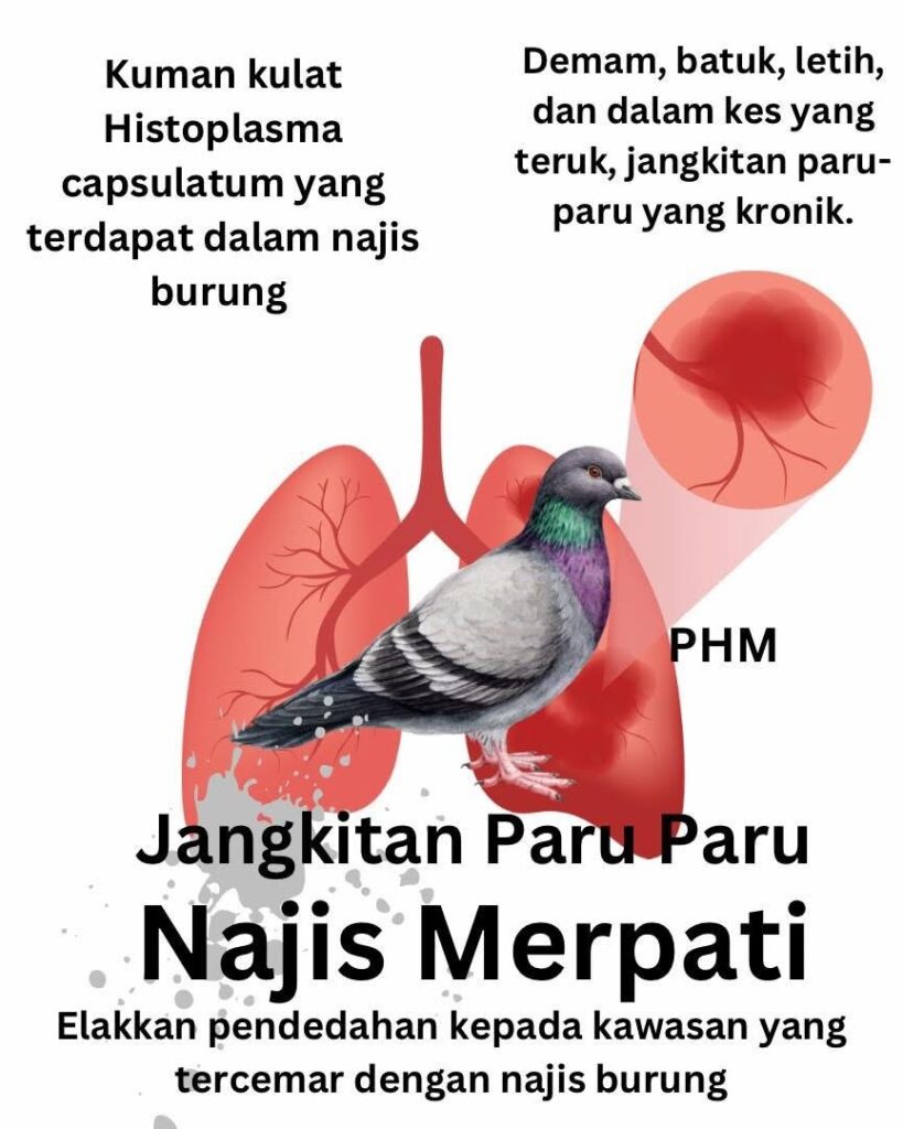 Difahamkan, najis burung merpati boleh mengakibatkan jangkitan paru-paru.