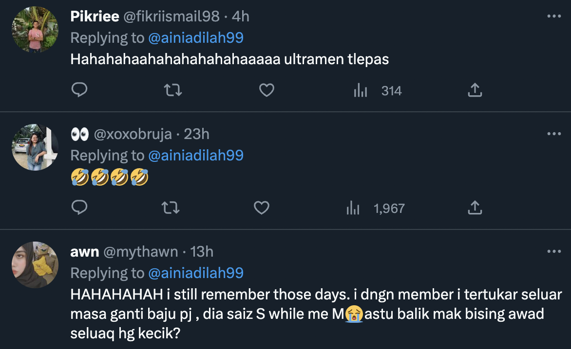 Namun, apa yang lebih mencuri tumpuan adalah salah seorang wanita memberitahu bahawa anaknya terbawa pulang seluar dalam seseorang dan bertanyakan siapa punya.