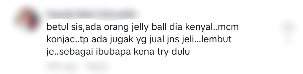 "Alhamdulillah keluar lah jelly ni, bagi budak walaupun bukan masuk sebiji tetap dia akan tercekik. Sebelum makan ingat tekstur macam agar-agar, dah makan sebiji rasa dan tekstur dia macam nata de coco tu," tulisnya.