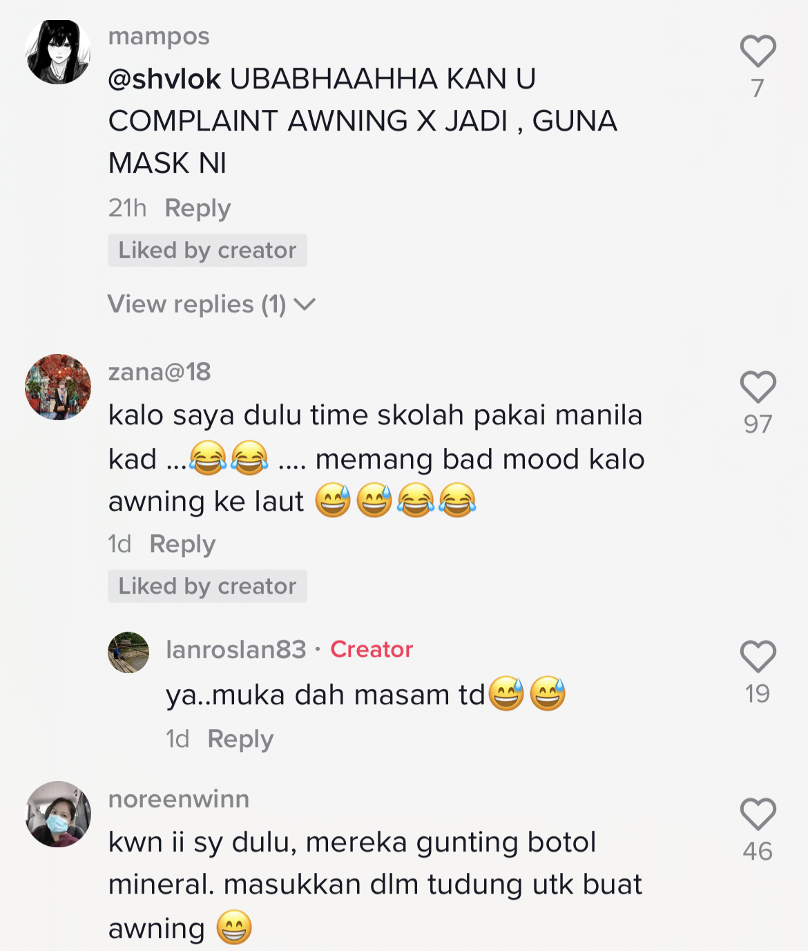 "Kawan-kawan saya dulu mereka gunting botol mineral dan masukan dalam tudung untuk buat awning" – Netizen